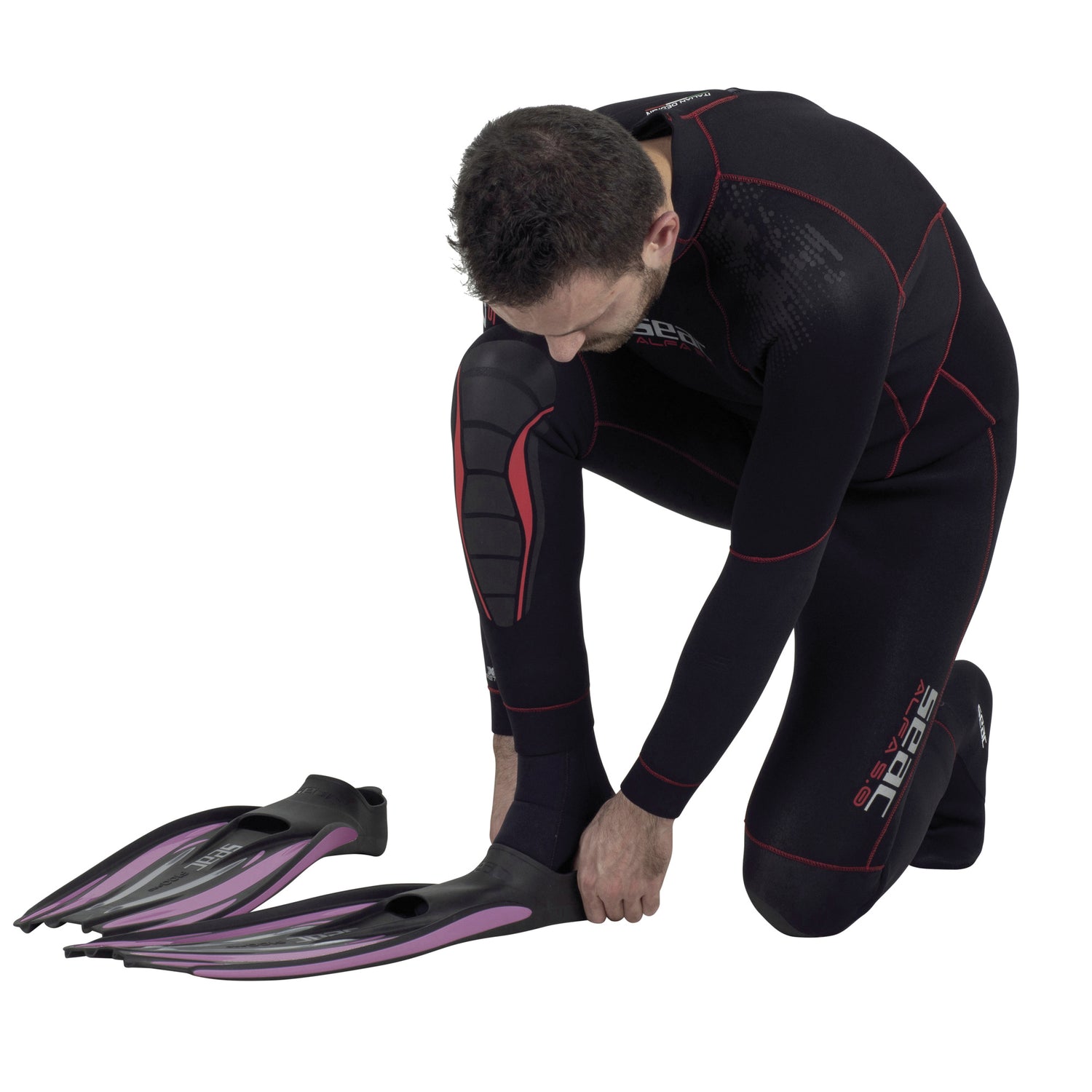 Perfect for scuba diving in warmer waters, the Seac F 100 PRO fins can also be safely used for snorkelling and spearfishing. Lightness, strength and comfort make them the ideal accessory for any water activity. Weighing only 748 grams the Seac F 100 PRO fin offer exceptional power to weight ratio helping newer divers and those experiencing their first adventures in diving, with a thrust release superior to the force used in kicking. The Seac F 100 PRO fin is designed for recreational use but incorporates many features of professional fins: anatomical shoe in thermoplastic rubber that holds the fin firmly in place taking advantage of every movement, and the sole of the shoe has non-slip rubber inserts, the benefits from the characteristic curving of 25 Β° which increases performance with minimum effort and the fins are exceptionally resistant thanks to the abrasion rubber inserts. The Seac F 100 PRO is available in 6 colours and 6 sizes. The Seac F 100 PRO scuba diving fins are guaranteed by Seacsub SpA, a bench mark in the diving industry since 1971.