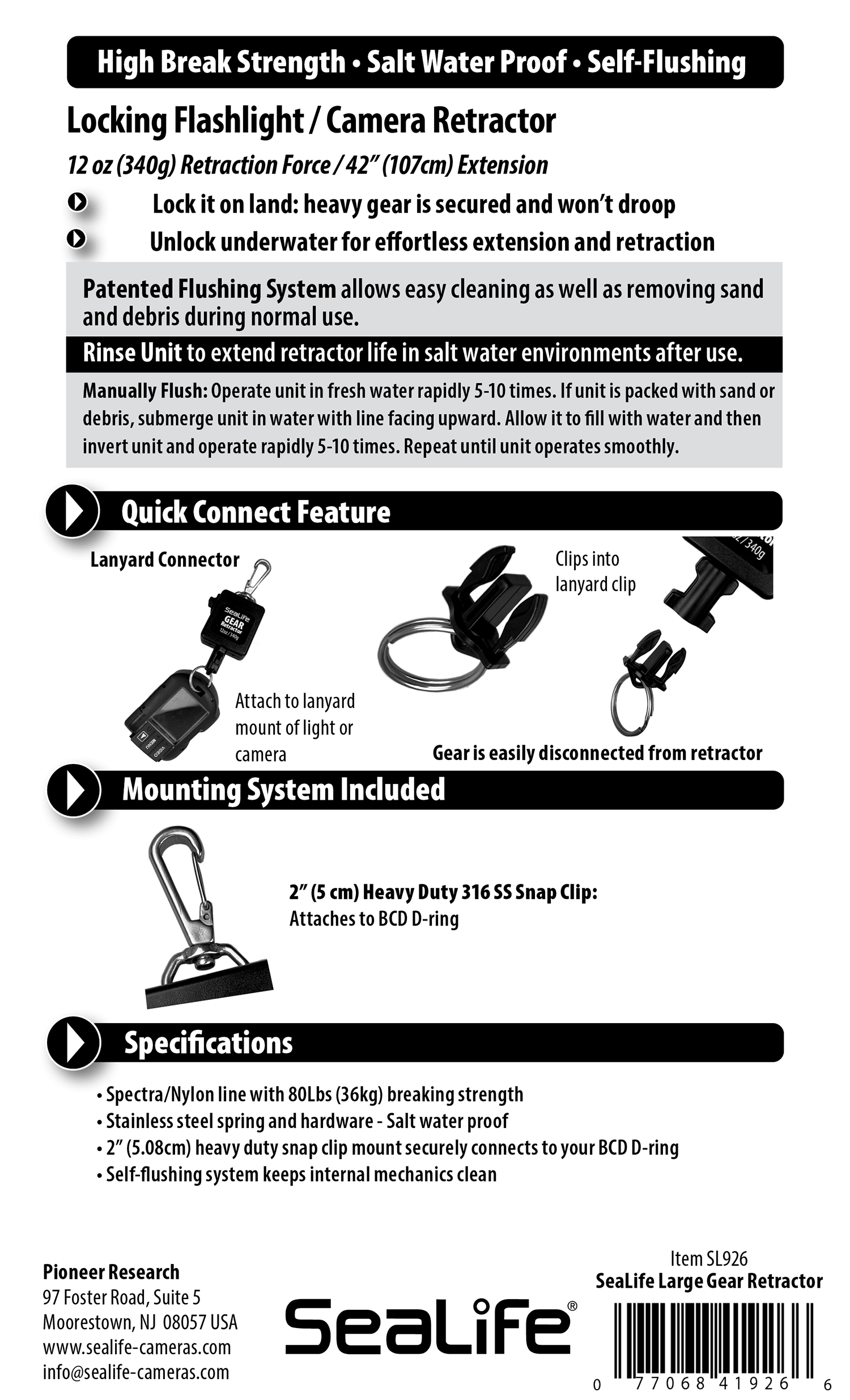 - Custom designed for SeaLife by GearKeeper (Hammerhead Industries)