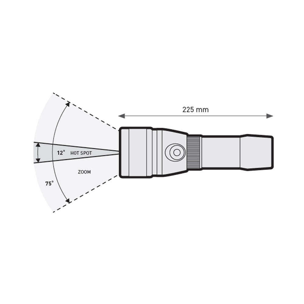 Light beam (1m distance) Hot Spot (12°) - Corona (75°)