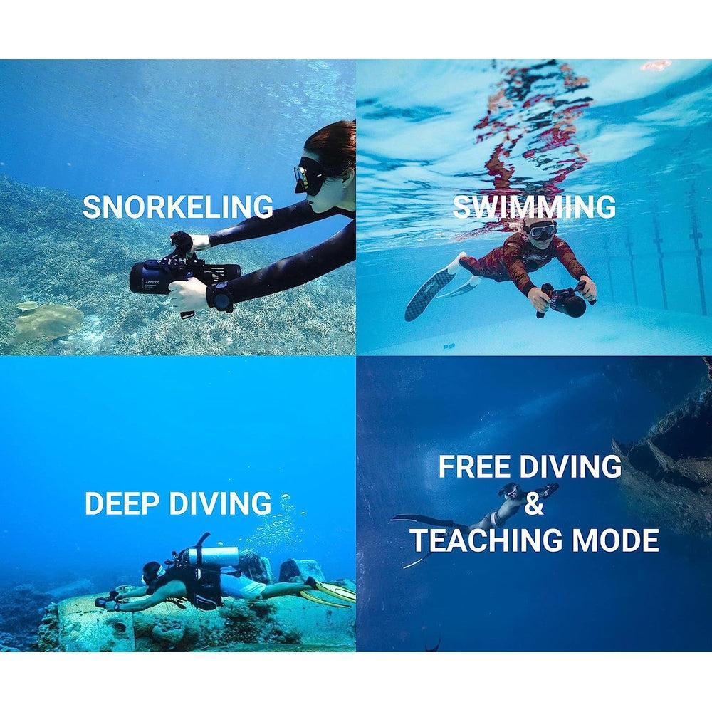 With an aircraft aluminum body ensuring durability and reliability, the Lefeet S1 Single Pro is designed for underwater adventures. Its compact size of 5.0 LBS makes it easy to carry and handle. With wireless controls and three speeds, you have full control of your underwater exploration. The TSA compliant battery allows for convenient travel, while its diving capability of 131 ft. opens up a world of underwater wonders. Enjoy a run time of 30-60 minutes and a speed of 1.8 m/per second or 4.02 mph as you glide effortlessly through the water. Recharging is quick and easy, with a battery charging time of just 2.5 hours. Plus, with a 1-year warranty on the S1 Pro and a 6-month warranty on the battery, you can dive with confidence. Unleash your inner explorer with the Lefeet S1 Single Pro today.
