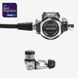 - Patented Comfobite mouthpiece reduces jaw fatigue and secures the second stage more comfortably