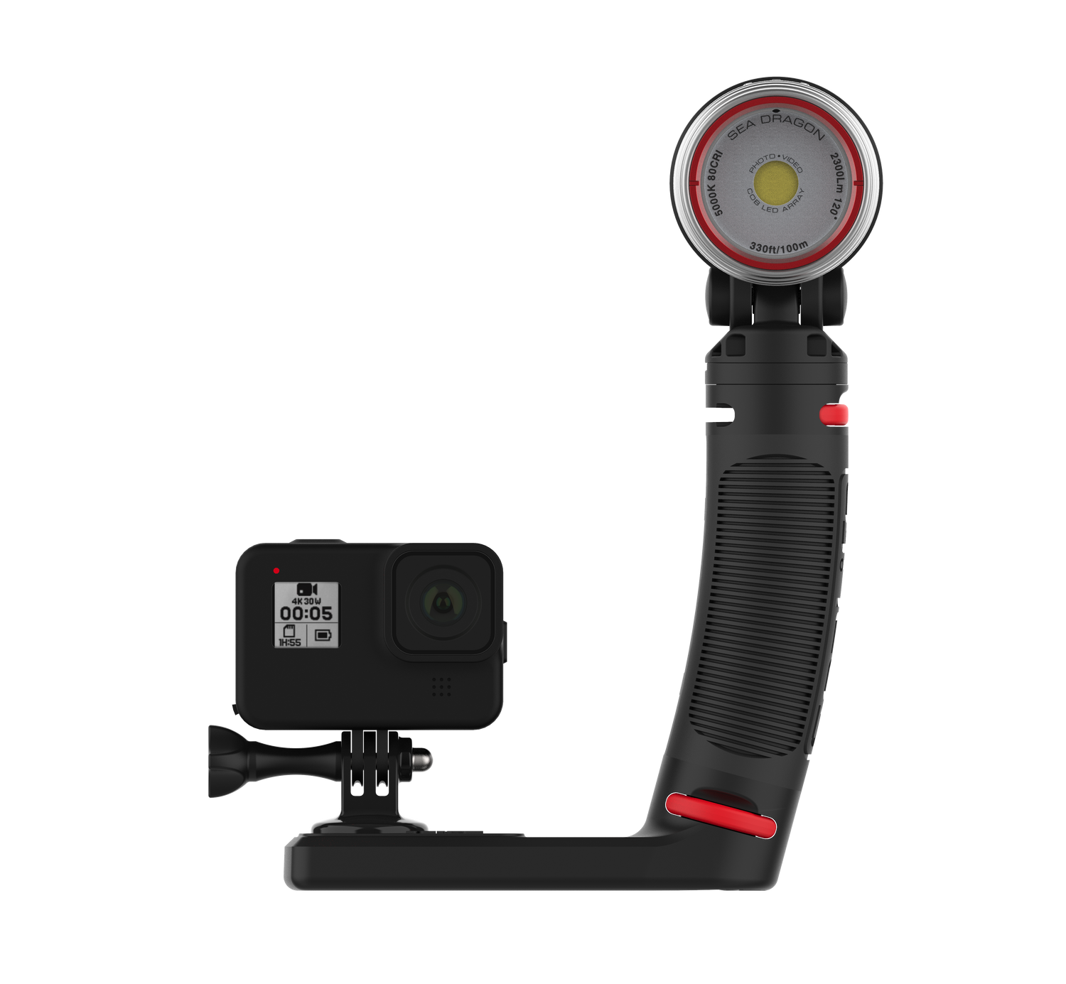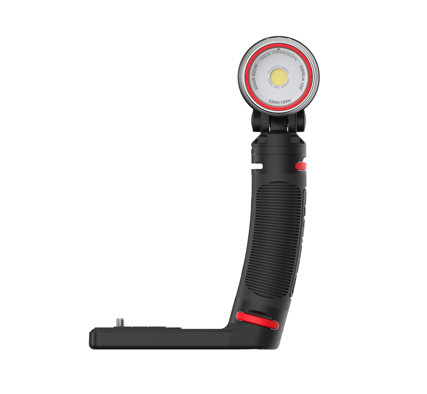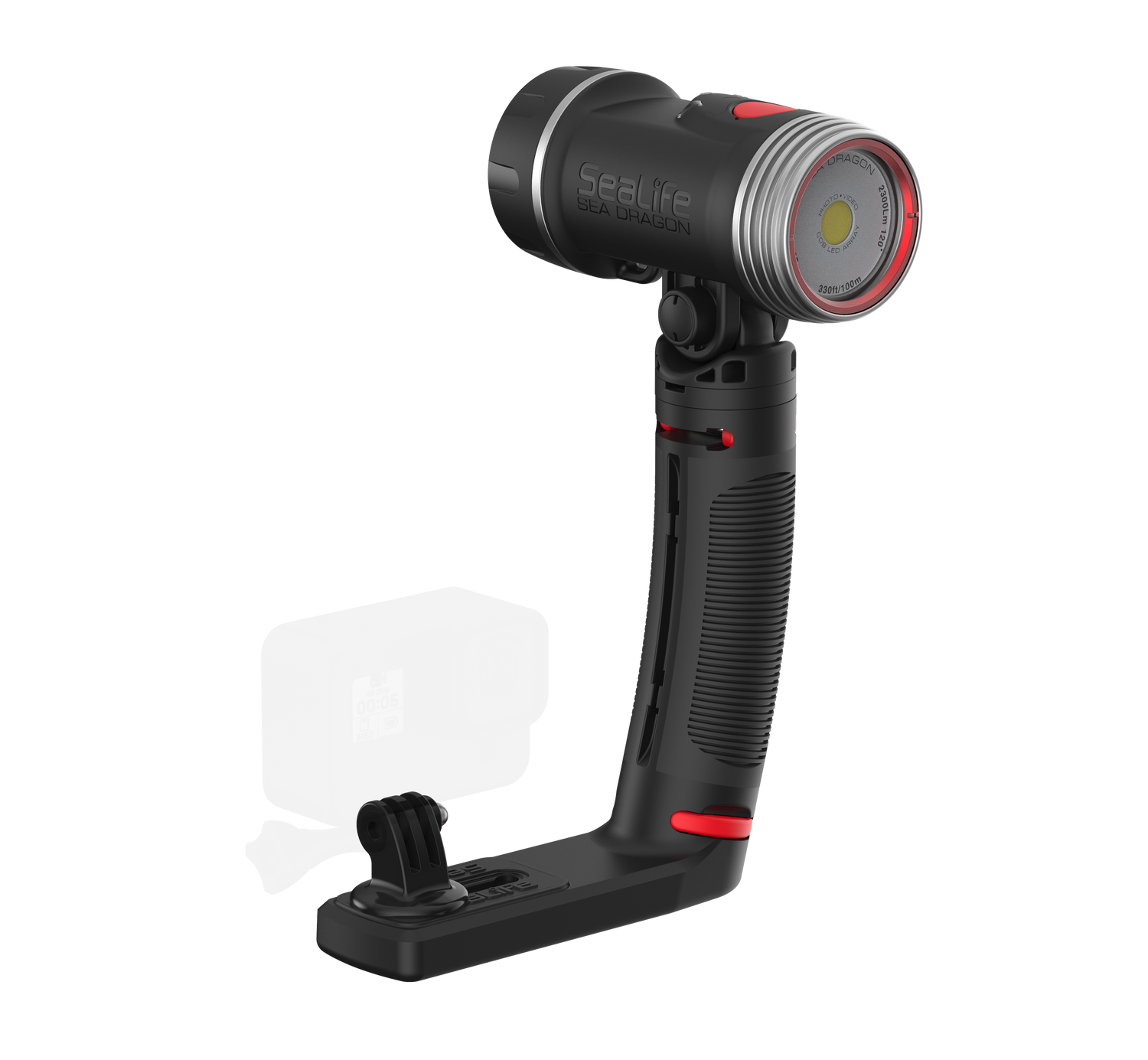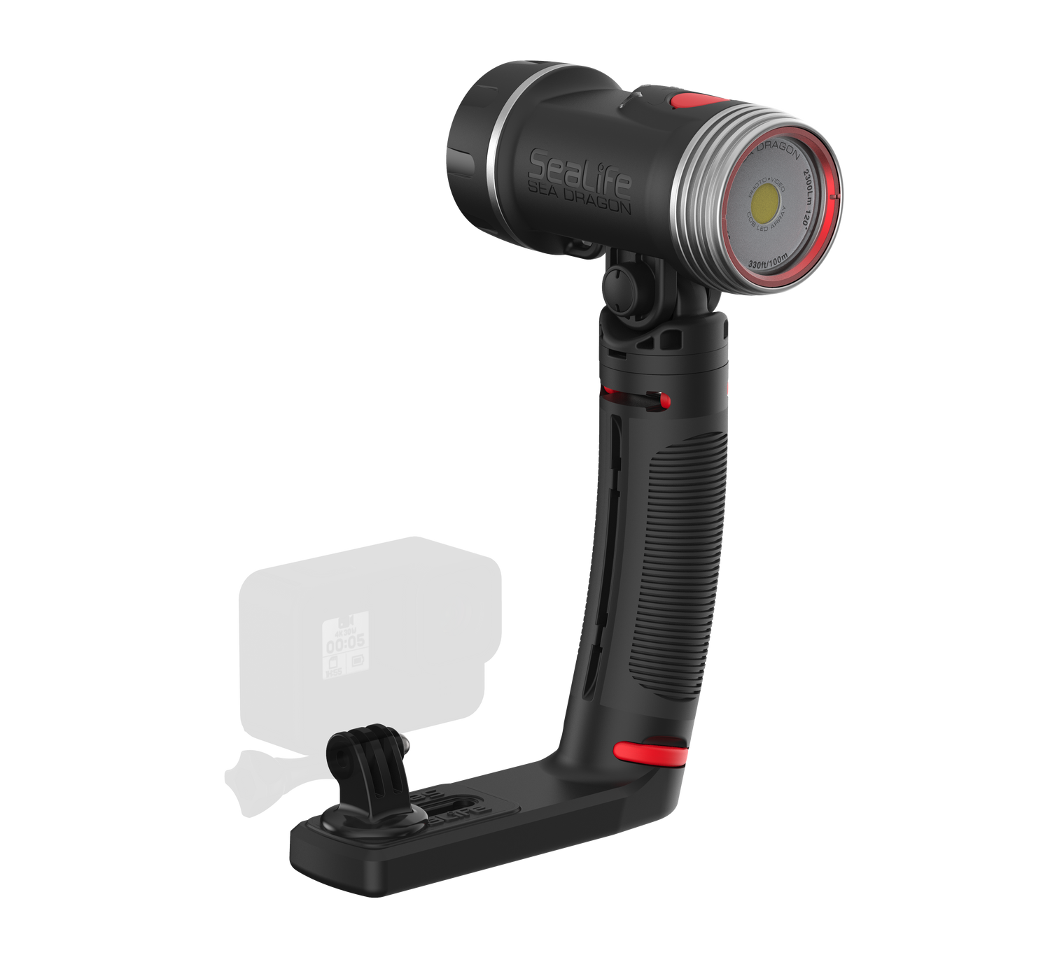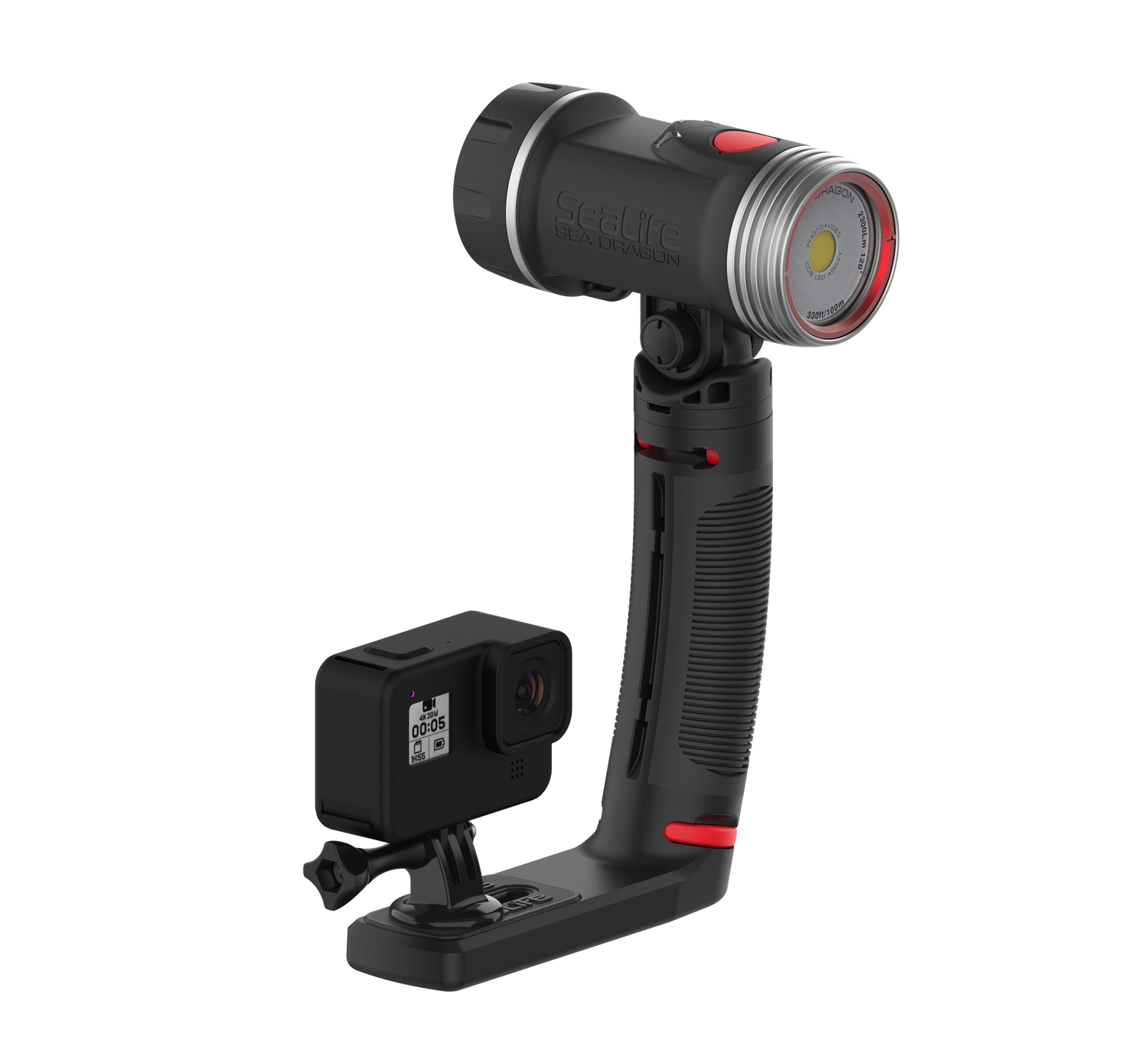 High-performance 3000 Lumen Underwater Photo-Video Light with Color Boost The Sea Dragon underwater photo-video light delivers 3000 lumens in a 120° wide beam without hotspots. A 90 CRI (color rendering index) COB LED array simulates natural sunlight, allowing the user to capture vibrant colors and sharp details in underwater photos and videos. The new patent pending SeaLife Color Boost™ mode combines specific red and white light frequencies, producing a warm and vibrant underwater color effect. Red is the first color in the visible light spectrum filtered out by water. The light’s Color Boost feature replenishes the lost red for a balanced, warm color effect. The new dial design delivers fast, intuitive power and brightness control. Rotate to power on/off and adjust brightness. Push the dial to switch between Color Boost and white light modes. Brightness can be smoothly and evenly adjusted from 300 to 3000 lumens without steps or clicks. Adjusting the brightness in Color Boost mode maintains the color temperature of 3900K. The light can be used as an emergency signaling device by pushing the dial down for 5 seconds. Push and release the dial will switch between SOS, Blinking and Red-only modes. The red-only mode is useful for night dives, so you won’t scare off light-sensitive sea creatures. The SOS and Blinking modes has a 20+ hour run time with full battery charge. Rotate the dial all the way counterclockwise to exit emergency signal mode and power off the light. Includes a powerful 3400 mAh Li-ion battery with protected circuitry delivers 60-minute run time at full power. Includes Flex-Connect grip and tray for mounting to any camera with standard ¼-20 tripod threads. Easy to expand with Flex-Connect™ system of trays, grip and Flex Arm.