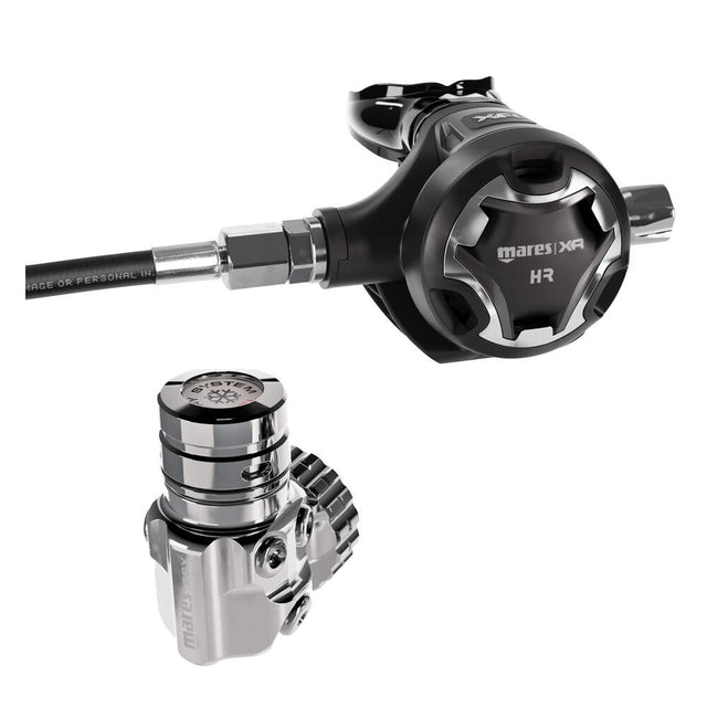The Mares 26XR-HR offers unmatched versatility for diverse tek dive configurations. The innovative first stage design incorporates 4 radial and 1 vertical low-pressure ports, enhancing flexibility for tec divers. The HR second stage features an Adjustable Breathing Comfort System for personalized inhalation effort control, while the VAD System with a "Curved" Bypass ensures natural, high gas flow at any depth. The technopolymer case combines simplicity, high performance and ultralight characteristics, complemented by PAD (Pneumatically Assisted Design) for added comfort during inhalation. The oversized purge button, designed for easy use with thick gloves, and the durable rubber LP hose, contribute to the set's reliability and resilience. Incorporating Natural DFC on all LP ports, a TBP Dry Kit for environmental sealing and AST (Auto Sealing Technology) to keep the first stage dry, the 26XR first stages are compact, lightweight and equipped with radial and vertical ports. The set embraces a G5/8 connection and 300 BAR (DIN), symbolizing the pinnacle of technical diving equipment for exploration and adventure.
