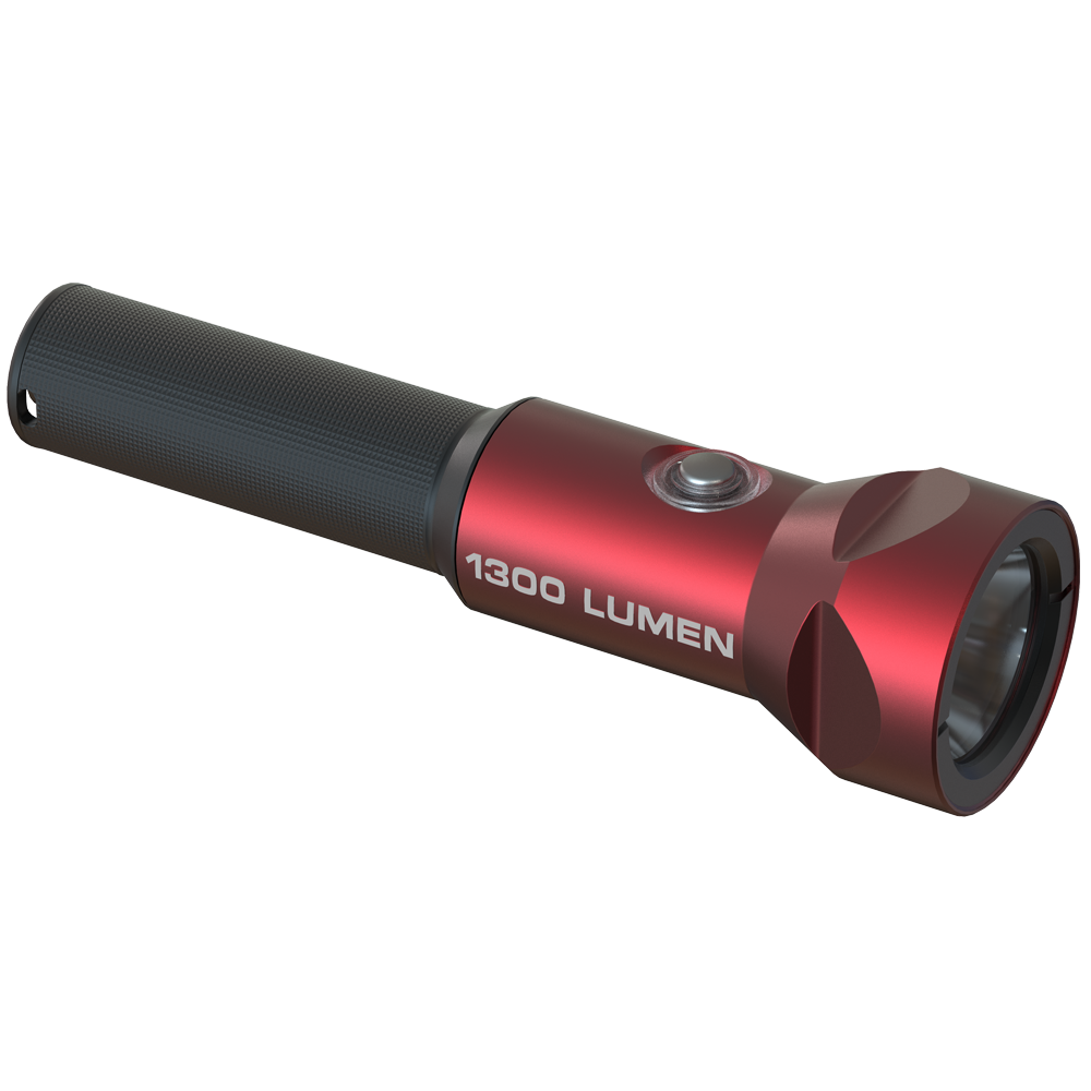 The five light modes are: full power, half power, quarter power, one-second flash signal and emergency SOS signal, both at full power. The light serves as a primary dive light or as a back-up light due to its combination of small, compact size, long run time and impressive power output. With a narrow beam angle of 8° (6° underwater) the powerful 1300 Lumen light is perfect for pointing out sea creatures at a distance, viewing in dark areas or crevices, getting your buddy’s attention or navigating a night dive.