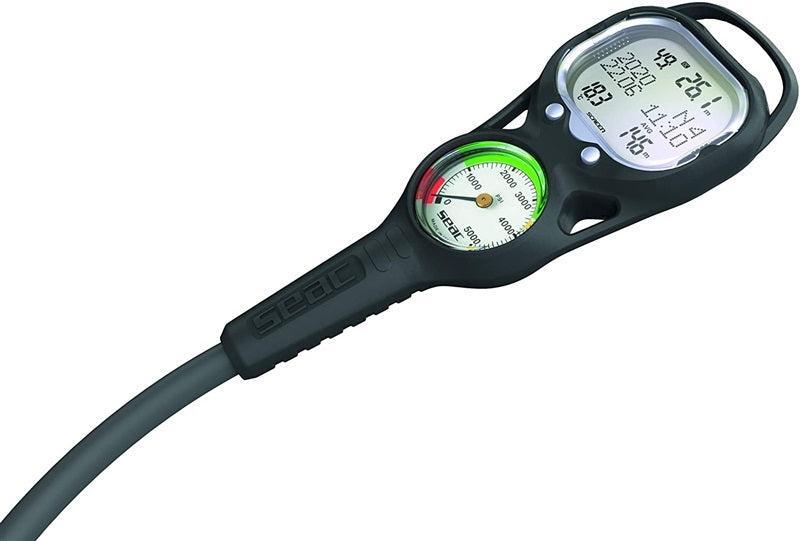 The Seac Screen is a dive computer for scuba and freediving with a large, readable screen, with adjustable contrast and brightness. Management of 1 or 2 mixes (air, Nitrox and other mixes with O2 max 99%). Available as a wrist mount unit or in a 2-gauge console version with a pressure gauge.