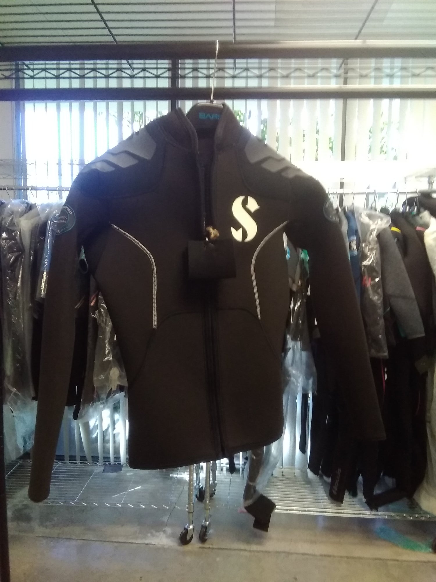 This 3mm long sleeve top can be paired with the 3mm pants as an alternative to the Everflex YULEX® 3/2mm steamer. Designed with the Pure Design Concept where fewer seams and panels are employed to maximize comfort and range of motion, the top features blind-stitched seams and comes with a black stretch polyester outside/inside lining. Super flexible, the top is fitted with a vertical front zipper and wrists feature fuse-cut finished cuffs that are super stretchy for easy donning. The top provides abrasion-resistant fabric with additional printed pads on the shoulders to prevent abrasion from BCDs.