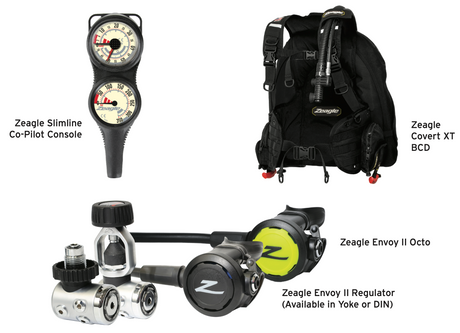 Zeagle Travel Package - Covert XT BCD, Envoy II Regulator & Octo, Slimline Co-Pilot Console