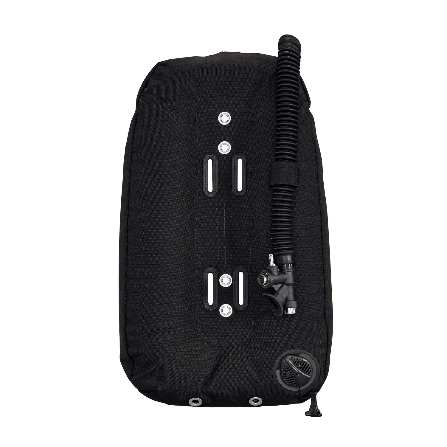 Introducing the InflatorK style BCD with brass buttons, designed for divers looking for quality and functionality. This low profile 16” oval-shaped hose is equipped with a safety cable to prevent hyper-extension, providing peace of mind during your underwater adventures. The BCD is positioned off-centre, ensuring it does not interfere with your regulator 1st stage, allowing for a comfortable and streamlined diving experience. The dump valve is low profile and flat, positioned in front on the lower-left side for easy access when needed.