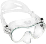Frameless Masks are loved by many divers for their Low-Profile and ability to Fold-Flat for easy carrying, even in a BCD Pocket. Cressi's F1 mask design bonds a High-Grade Silicone Double Feathered Edge Skirt directly to a Single Tempered Glass Lens for the Ultimate in Simplicity. The Low Internal Volume allows for effortless clearing and the Quick-Adjust Strap Buckles are molded directly into the Skirt for a Flexible Fit and Reduced Drag. The Easy Access Nose Pocket can be used with one hand for proper Ear Equalization and the Single Lens Design affords a Wide Field of Vision. The Cressi Frameless Mask has a Wide Split Mask Strap Design for Comfort and to give Even-Tension on the Skirt for a Proper Seal. Mask comes with a Mask Box. The Cressi F1 mask is commonly used for Open Water Diving, Pool, Recreation, Snorkeling and more.. The mask is popular because customers like the following qualities of the Cressi: does not fog, high quality lenses, large range of vision, snug fit.