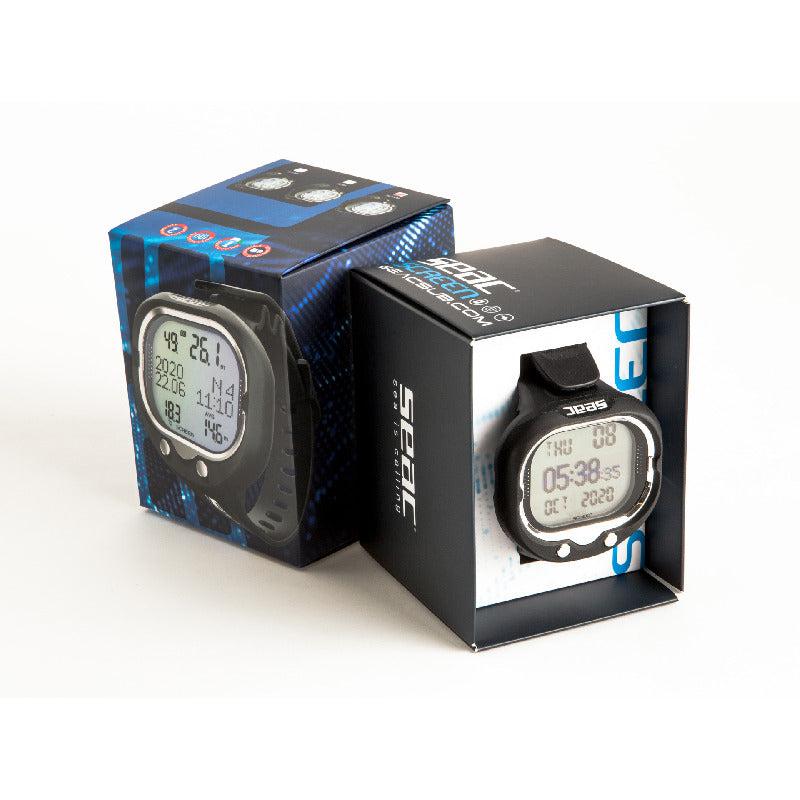 The Open Box Seac Screen Wrist Computer is an essential piece of scuba diving gear designed for divers who prioritize clarity and functionality underwater. This advanced dive computer simplifies the reading of all crucial dive profile data through its large display, ensuring that divers can easily monitor their information at a glance. With adjustable contrast and brightness settings, the Seac Screen adapts to various lighting conditions, allowing for optimal readability whether in bright sunlight or murky depths.