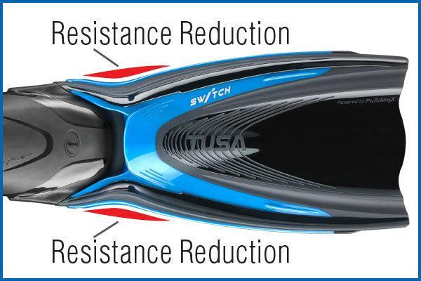 Six (6) performance ridges positioned behind the blade vent reduce resistance, creating a smoother and more efficient kick cycle.