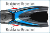 - Vortex Generator — six ridges behind the blade vent reduce water resistance for a smoother kick cycle.