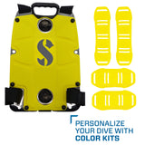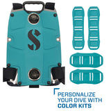 Key components include a 3D-formed back plate with harness and adjustable TEK LOC shoulders to deliver a precise, secure fit, plus a Single Tank Adapter for flexible rigging options. Built for comfort, the system includes padding at the back, shoulders, and waist to reduce fatigue during long dives.