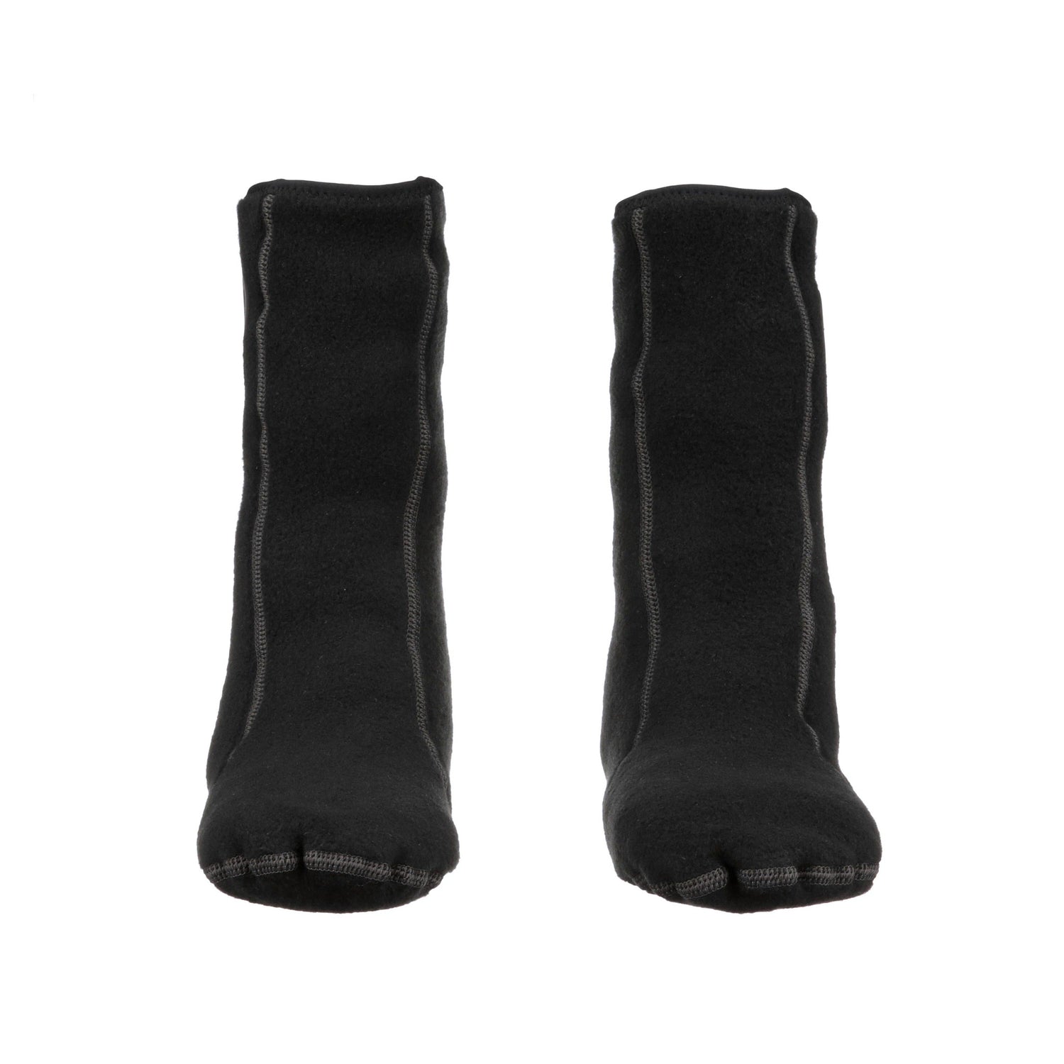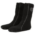 Designed for versatility in scuba gear, these high-cut socks provide ankle coverage and slip on easily inside drysuit boots. They are unisex, available in black with gray stitching, and feature a no-zipper, slip-on design suitable for recreational diving and general underwater activities.