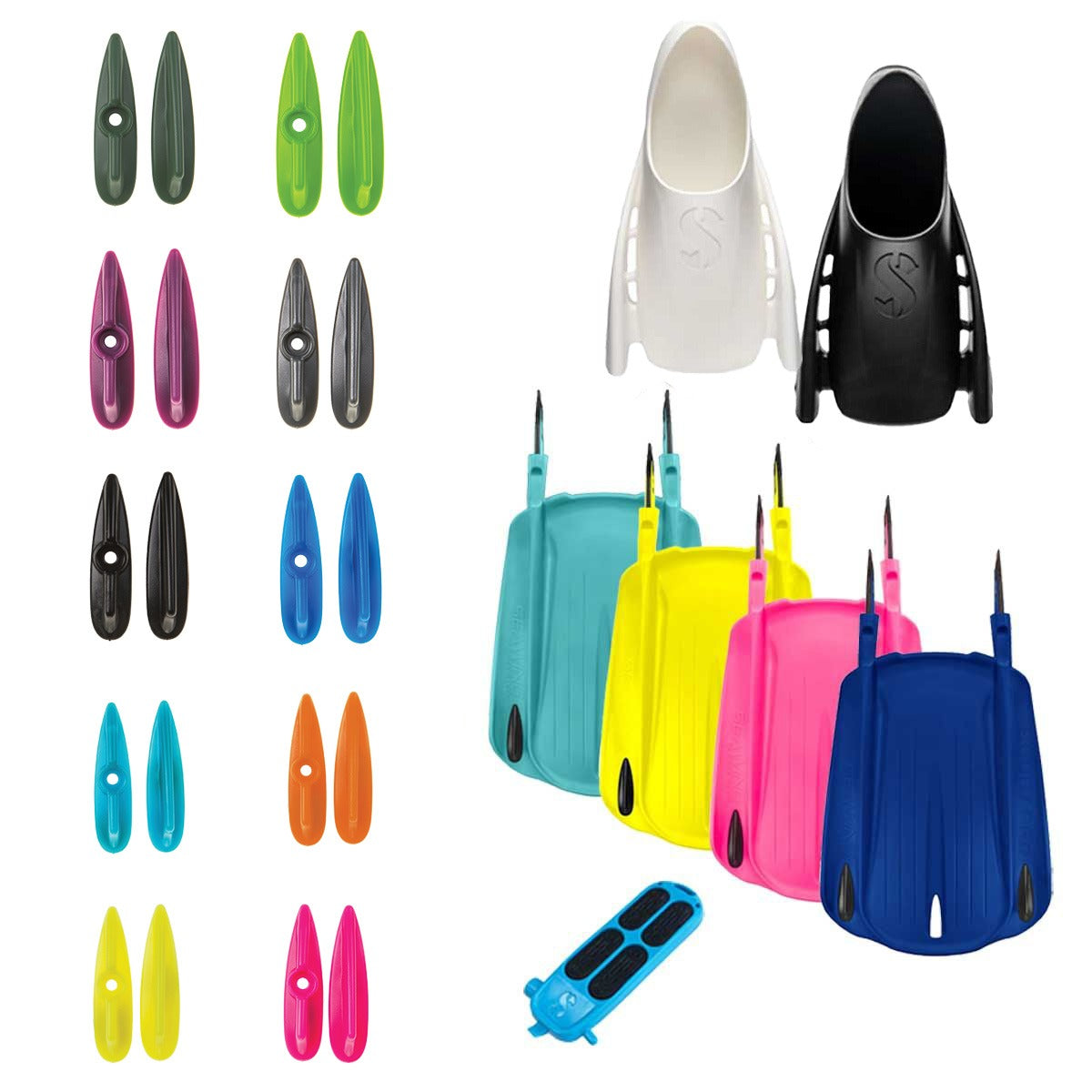Built around the Seawing Supernova blade, the system emphasizes efficient propulsion and controlled movement while scuba diving. Optional scuba skegs can be added to adjust tracking and stability, making this diving gear adaptable for various kicking styles and underwater environments. The modular design also supports easier transport, maintenance, and component replacement.
