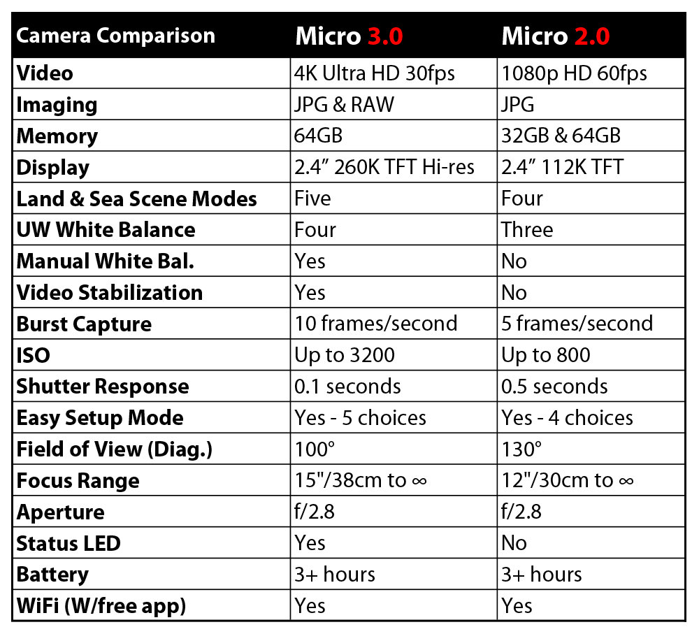 The SeaLife Micro 3.0 Camera is the latest and third generation of the popular permanently-sealed Micro camera series. The camera is leak-proof with no O-rings to lube or maintain, so there is never a worry about flooding the camera. Like its forerunners, the Micro 3.0 features an ergonomic, compact design with easy-to-use controls and menus. The Micro 3.0 camera offers impressive still images with its large SONY® 16MP CMOS sensor, and vibrant 4K Ultra HD video. You can even shoot 8MP stills while you’re recording video. Since it’s permanently sealed, the Micro 3.0 has a large 3-plus hour battery good for a full day of diving and built in 64gb of memory to store thousands of photos and hours of video.