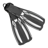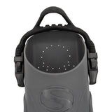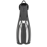 Crafted with a lightweight yet durable dual-composite fin blade, these fins boast full-length power rails and a central flex channel for optimal propulsion and maneuverability underwater. The open heel foot pocket is designed for maximum comfort and security, enhanced by our unique and highly stretchable silicone heel strap. Perfect for travel, these fins offer unparalleled performance wherever your diving adventures take you.